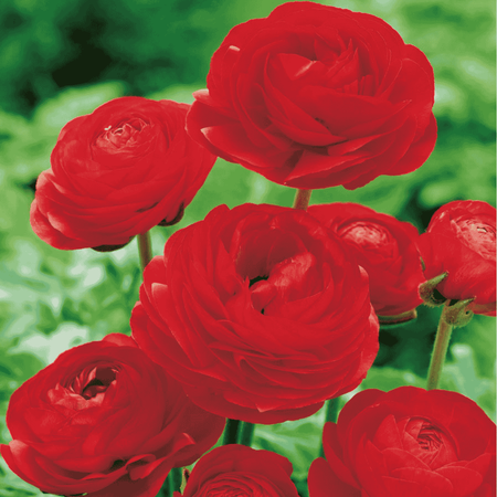 Jaskier czerwony to niezwykle dekoracyjna roślina cebulowa, która zachwyca pełnymi, aksamitnymi kwiatami o intensywnym, słonecznym kolorze. Kwiaty są duże, gęsto wypełnione płatkami, tworząc niemal idealne kiliste i półkuliste kompozycje. Intensywna czerwona barwa sprawia, że roślina stanowi wyrazisty akcent na rabatach, w pojemnikach lub w bukietach ciętych. Jaskier czerwony kwitnie od wiosny do wczesnego lata, a jego smukłe, wyprostowane łodygi stabilnie utrzymują kwiaty, dzięki czemu doskonale nadaje się do ogrodu i na kwiat cięty.