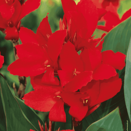Kanna czerwona to niezwykle efektowna roślina ozdobna, która wnosi do ogrodu egzotyczny charakter i letnią energię. Jej duże, dekoracyjne kwiaty w odcieniu czerwieni pięknie kontrastują z bujnymi, szerokimi liśćmi, tworząc wyrazisty i elegancki akcent na rabatach. Roślina tworzy silne, wzniesione pędy, na których przez całe lato i aż do jesieni pojawiają się kolejne kwiatostany. To idealny wybór dla osób, które chcą wprowadzić do ogrody dynamikę i odrobinę egzotyki.