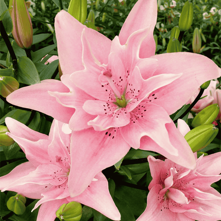 Lilia azjatycka pełna Elodie to wyjątkowo elegancka odmiana, ceniona za pełne, wielopłatkowe kwiaty pozbawione pyłku, dzięki czemu idealnie nadaje się do ogrodu i do wnętrz. Jej kwiaty są duże, gęsto wypełnione płatkami, w delikatnym jasnoróżowym kolorze z subtelnymi, jaśniejszymi przejściami. Brak pylników sprawia, że kwiaty są wyjątkowo czyste i trwałe, a także bezpieczne do bukietów i kompozycji florystycznych.