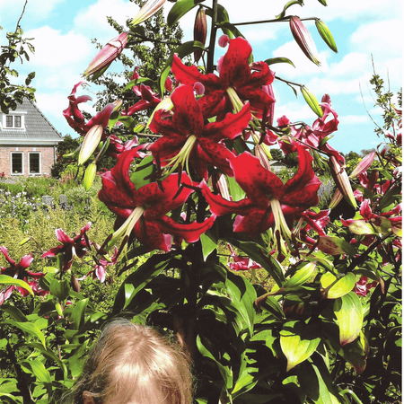 Lilia drzewiasta Miss Feya kwitnie latem i tworzy wielkie, dekoracyjne kwiatostany, idealne na rabaty, w grupowych nasadzeniach oraz jako kwiat cięty. Silne, wyprostowane pędy i ciemnozielone liście zapewniają stabilność rośliny i piękny efekt wizualny.