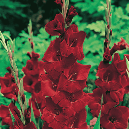 Mieczyk Oscar to efektowna odmiana o dużych, intensywnie czerwonych kwiatach, które przyciągają wzrok i wprowadzają do ogrodu elegancję. Kwiaty wyrastają na wysokich, wyprostowanych pędach, zwykle w liczbie 6-10 na jednym pędzie, tworząc dekoracyjne, strzeliste wiechy. Płatki są szerokie, lekko falujące, a ich głęboka czerwień nadaje roślinie intensywny, luksusowy charakter. Mieczyk Oscar kwitnie od lata do wczesnej jesieni, doskonale sprawdzając się na rabatach, w większych kompozycjach ogrodowych, a także jako kwiat cięty do wazonu.