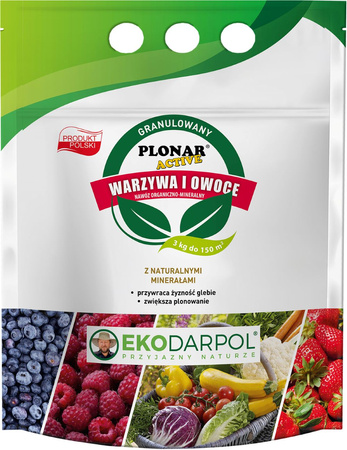 Granulowany nawóz organiczno-mineralny Plonar Active do warzyw i owoców to ekologiczna alternatywa dla tradycyjnych nawozów. Dzięki wysokiemu stężeniu kwasów humusowych oraz makro i mikroelementów, skutecznie poprawia żyzność gleby. Jeden kilogram Plonar Active zastępuje tonę obornika, co sprawia, że jest to wyjątkowo wydajny nawóz. Można go stosować do polepszania i rekultywacji gleb przed uprawą warzyw i owoców.