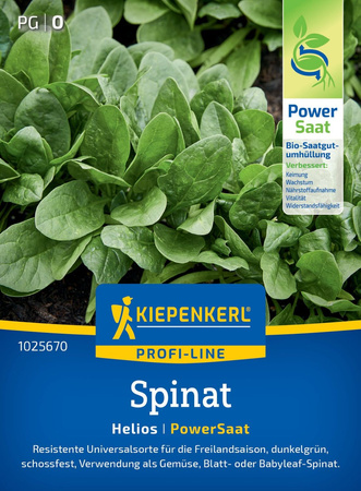 Szpinak Helios F1 - nasiona otoczkowane - odmianę szpinaku Helios możemy uprawiać na zewnątrz przez cały rok. Charakteryzuje się silnym wzrostem, dużymi, soczystymi liśćmi o intensywnym zielonym kolorze oraz doskonałym smakiem. Świetnie sprawdza się przy spożyciu na świeżo, do gotowania, mrożenia czy sałatek. Wyróżnia się wysoką odpornością na choroby i niekorzystne warunki pogodowe. Szybko się regeneruje i równomiernie wyrasta, zapewniając obfite plony przez długi czas.